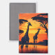 Die Silhouetten von zwei Giraffen an einem Wasserloch, mit Baobäumen und der untergehenden Sonne bilden einen schönen und farbenfrohen Magneten. Ideal für alle, die Liebe von Natur und Natur.