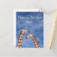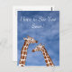 Illustration von zwei glücklichen Giraffen vor einem blauen Himmelshintergrund. Im Text steht 'Hope to See You bald'. Personalisieren Sie diese Karte einfach, indem Sie den Vorlagentext bearbeiten. Danke, dass du mir meine Entwürfe angesehen hast!