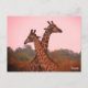 Giraffen, stehend in Mopanobäumen mit rosa Himmel Postkarte