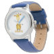 Kinderuhr aus Edelstahl mit blauem Lederarmband