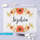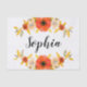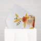 Gewebe mit korallenfarbenen Blume auf weißem Hintergrund und anpassbarem Text.
