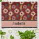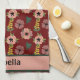 Farbige und niedliche, gürtnerrosa Blume botanisches, nahtloses Muster auf dunkelroten Küchentüchern. Es ist ein wunderschöner personalisierter Name, irgendein gelegentliches Geschenk für sie, die Blumenmuster Lieben. Sie können Text und Hintergrundfarbe ändern.