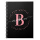 Girly, elegant, trendy, modern, rosa und schwarz weiß Anfangsnamen Skript personalisiertes mit Monogramm Notebook. Mit einem Monogramm-Initial- und einem gürtelhaften Namensskript in einem handgeschriebenen Kalligraphie-Schwanz-Schriftart und einem gepunkteten Kreisrahmen um Ihr Monogramm. Großes Frauengeschenk für Freundin, Geburtstag, Mutter, Hochzeit, 16 Geburtstagsparty Brautparty, Babydusche, Business, Zuhause Office, berufliche Arbeit und für alle, die hübsche moderne Stil mögen.