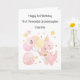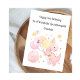 This card is suitable for a granddaughter or daughter on their first, 2nd or 3rd birthday (the age can be changed or removed). The design includes watercolour stars, a dinosaur egg and a pink dinosaur with balloons and cupcake.