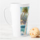 Künstlerisches Bild mit einem Mädchen und Surfbrett, die frei leben mit Sport und Spaß, in einer wunderschönen Landschaft der exotischen Natur.