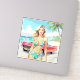 Girl am Strand mit einem klassischen Auto Aufkleber