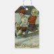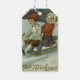Girl and boy enjoy a sleigh ride illustration geschenkanhänger
