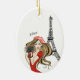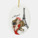 Girl and Eiffel Tower Black, Red Christmas Keramik Ornament