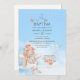 Niedlicher Engel mit sonnigen Kaninchen Taufe Foto Einladung. Es wird ein Foto im Porträtformat empfohlen.