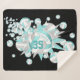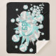 Die bunte Sherpa-Fleecedecke des Mädchens mit Volleyball-Thema präsentiert eine "Explosion" von verschiedenen Größen-Aqua, grauen und weißen Volleybällen und Aqua, grauen und weißen Sternen auf einem individuell anpassbaren schwarzen Hintergrund - mit Athleten-Namen und Jersey-Nummer abgestimmt - die Aqua- und grauen Volleyball-Panels werden mit einem gürlich floralen kaleidoskopischen Muster für einen Das Aqua-Stern wird von katz_d_zynes mit einem winzigen Polka-Punktmuster überdeckt