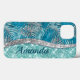 Girl-aquamarin-grüner Glitzer Blätter monogramm Case-Mate iPhone Hülle