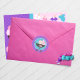 Girl Baby Doll Birthday Classic Circle Round Stickers in Lila, rosa und Aquamarin blau. Perfekte Ergänzung zum Party für jeden kleinen Puppenliebhaber! Nutzen Sie als Umschlag Aufkleber Taschenaufkleber, Kuchenoberflächen, dekorieren Sie Ihre Getränketassen und vieles mehr!