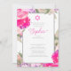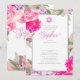 Eine hübsche Rose Blumenzeremonie in Hebräisch. Das Design ist rosa, floral auf weißem Hintergrund mit einem silberfarbenen Text, der leicht auf Ihre Informationen geändert werden kann. Wählen Sie aus einer Reihe von Papiertypen. Die Rückseite hat ein rosa Blumenmuster und ein Stern von David mit eigenem individuelle Name.