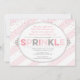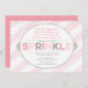 Ein niedliches pinkfarbenes und silbernes Baby sprinkle Einladung für eine kleine Dusche mit Konfetti.