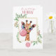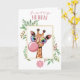 Eine wunderbare Geburtstagskarte mit einer niedlichen Giraffe, die fröhlich eine übergroße Regenbogenbrille trägt, die eine große rosa Blase bläst. Die Giraffe, umgeben von üppigem Dschungelwald in sanften pastellfarbenen Grüntönen und Braun, schafft eine skurrile und unterhaltsame Atmosphäre. Der Gruß "HAPPY BIRTHDAY!" erscheint in einem spielerischen Schriftart in einer lebhaften rosa Farbe über der Giraffe. Unter dem Bild befindet sich eine anpassbare Zahl für das Alter des Kindes. Im Inneren der Karte befindet sich eine individuell anpassbare Geburtstagsnachricht. Egal ob es sich um eine besondere Erinnerung oder eine besondere Geburtstagsbotschaft handelt, dieser Raum ist voll editierbar, um einen einzigartigen und herzlichen Geburtstagsgruß für ein kleines Mädchen zu schaffen. Kontaktieren Sie uns für weitere Anpassungen vor der Bestellung. Vielen Dank für Ihren Besuch in unserem Geschäft! Copyright Bubblegum She-Nanigans. Alle Rechte vorbehalten. Die Niedliche Gummiballmaschine aus der Whimsikkunststoff-Klinik, die Postkarte für den Kindergeburtstag.