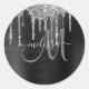 Girl Black Dripping Glitzer Brush Metal Monogram Runder Aufkleber