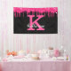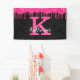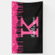 Dieses trendige und einzigartige Glam Girly-Design bietet festlich heiß rosa Fuchsia magenta Glitzer Tropfen an der Spitze und ein großes individualisierbares Monogramm in hellrosa in der Mitte in beliebter Serif Typografie zusammen mit einem anpassbaren Namen in Weiß in beliebter Schrift mit einem handgeschriebenen Look. Im Hintergrund befindet sich das gebürstete Holzkohle-graue schwarze Onyx-Metall für den zusätzlichen Funken. Dieses Banner eignet sich hervorragend für Geburtstagsfeiern, Brautduschen und Babyduschen oder andere besondere Veranstaltungen oder Feiern. Sie können dieses Element personalisieren, indem Sie das Monogramm und den Namen in der Produktvorlage ändern.