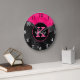 Girl Black Hot Pink Gray Waves Glam Monogram Name Große Wanduhr