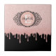 Girl Black Rose Gold Glitzer Tropfen Monogram Fliese