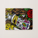 Perfekter Druck für Dia De Los Muertos (Tag der Toten), Piratenfeiern oder einfach nur für den Alltag. Ein glamouröses Zuckerschädel-Mädchen mit rote Rose und farbenfrohen Akzenten.