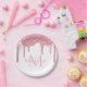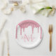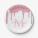 Girl Blush Pink Glitzer Tropfen Monogram Birthday Pappteller