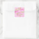 Girly und hübsche Rosa Quadrat Aufkleber mit dem inspirierend Zitat "Sparkle on, Darling" in einem eleganten, weißen Drehbuch, mit einem rosa Band Banner Hintergrund und einer vergoldeten Glitzer Glitzern Kontur.