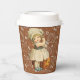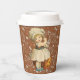 Halloween-Papiertücher mit einem kleinen Mädchen in altmodischem Kleid, ein Apfel schneidend und die Schale über ihre Schulter werfen. Dieses Spiel wurde von Kindern gespielt. Die Apfelschale sollte fallen, um die Initialen oder den Namen ihrer Zukunft betrothed.