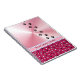 Girly Customized Dog Paw Print Design. Der obere Teil ist ein moderner metallischer Hintergrund mit vertikalen kleinen Hundabzügen. Im unteren Drittel befindet sich eine rosa Namensschild mit horizontalen Herzdiamanten, hier können Sie Ihren Wunschtext personalisieren. Im unteren Teil ist das niedliche Herz- und Hundedruckmuster über dem rosa Glitzer. Supreme Customs Art & Design Studio.