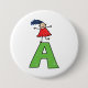 Girl Dancing on Green Letter A Fun Alphabet Button