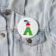 Mit diesem niedlichen Knopf, auf dem ein Mädchen auf einem großen grünen Buchstaben A tanzt, können Sie sich auf Ihre spielerische Seite stellen. Dieses farbenfrohe und fröhliche Design ist ideal für Rucksäcke, Jacken, Gastgeschenke oder Klassengeschenke.