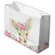 Hirschduschgeschenk-Tasche mit bezauberndem Wasserfarben Baby Hirsch mit Blume auf dem Kopf auf einem Hintergrund von hübschen Aquarell-Blume. Diese niedliche Hirschgeschenktüte ist leicht mit Text versehen.