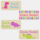 Girl Dinosaur Kleideretiketten für Kinder Perfekte Art, Ihre kleinen Dinogegenstände zu kennzeichnen! Adorable personalisierte Labels für Schule, Sport, Tanz, Camp und mehr! Bekleidung, Handtücher, Schulbedarf, etc...........................................................................