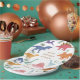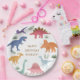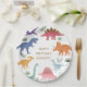 Die farbenfrohen Teller zum Thema Dinosaurier verleihen dem Geburtstagsdekor eine Touch.