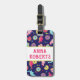 Ein personalisierter Dinosaurier Gepäckanhänger für Mädchen mit farbenfrohen Dinosauriern, die auf Donuts spielen!