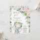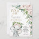 Celebrate your sweet baby girl with this adorable Girl Elephant Baby Shower Invitation. Featuring a charming baby elephant wearing a delicate pink flower crown surrounded by soft pink florals and lush greenery on the right side, perfect for a sweet and elegant shower theme. Perfect for a floral or safari-themed baby shower, this invitation brings a warm whimsical charm that guests will love. BBS504