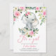 Girl Elephant Rosa Blume Grünpflanzen Das ist eine bemerkenswerte Babydusche mit niedlichem Elefant mit rosafarbenen Blumen und frischer Vegetation