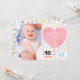 Girl First Birthday Confetti Herzballon Foto Einladung