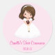 Ein hübscher Aufkleber mit einem brünetten Mädchen, das eine Bibel mit einem Rosenkranz an den Händen hält. Ideal, um Gefallen zu schmücken, Beutel zu bevorzugen oder als Umschlag Aufkleber zu verwenden.