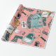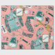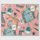 Whimsy Aquarell Blumenmuster Fitness themed Muster Packpapier in Akzente von aquamarin, Gold und Rosa.