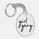 Einfache, stilvolle "Girl-Gang"-Zitat-Keyring in moderner minimalistischer Schrift-Typografie in schwarz, um Frauen und Mädchen Power zu feiern! Perfekt vielseitig für den Alltag, einen Junggeselinnen-Abschied oder eine niedliche Kombi für Mutter und Töchter, Schwestern und Freunde!