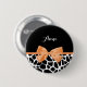 Eine gürtelschwarz-weiße Giraffendrucktaste mit einem niedlichen orangefarbenen Band in einem stilistischen Bogen. Personalisieren Sie diese modische Etikettenmarke für den Tierdruck, indem Sie Ihren Namen hinzufügen. Flachdruckbild, nicht eigentlicher Bogen.