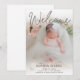 Diese supereinfache, moderne Ankündigung der Geburt von Fotos ist klassisch und trendig zugleich. Es hat das Wort "Willkommen" in einem modernen Skript-Schriftart in grau und alle Geburtenstatistik des Babys vorne. Jeder wird Liebe ein neues Foto bekommen und Freude und Spannung teilen. Es ist so einfach, sich selbst zu machen. Wählen Sie Personalisieren Sie diese Vorlage, laden Sie Ihr Foto hoch, geben Sie Ihre Informationen ein und in Sekunden können Sie Ihre phantastischen und einzigartigen Geburtsankündigungen sehen.