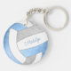 Dieser hübsche Volleyball-Schlüsselanhänger zeigt das realistische Bild eines Volleyballs, der hellblaue, graue und weiße Paneele hat, auf denen man seinen Namen individuell einstellen kann - die blau-grauen Volleyballfelder werden mit einem gürtelhaften, kaleidoskopischen Muster vermischt - von katz_d_zynes