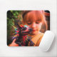 Dieses Mousepad hat ein kleines Mädchen, das eine Kreatur auf sich hält.