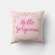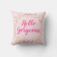 Das Kissen mit dem Namen "Hello Gorgeous" in einem eleganten, rosafarbenen Schriftzeichen ist in hübschem Rosa gehalten.