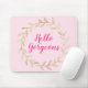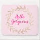 Das hübsche, schwarz-rosa Goldkrautmaus mit den Worten "Hello Gorgeous" in einem eleganten, rosafarbenen Drehbuch.