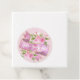 Girly und hübsch blush pink Gefälligetags mit den Worten "Hello Gorgeous" in einem eleganten weißen Skript, mit einem lila lila Band Banner Hintergrund und einem goldenen Glitzer funkeln Kontur. Zwei schöne Frühlingsfarben mit Blumenarrangements und rosa Rosen und Grün runden das Design ab.
