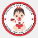 Der klassische Rundaufkleber für die Babydusche ist rot, weiß und schwarz in ladybug-Design. Der Aufkleber ist mit niedlichem Mädchen und Polka Dot-Hintergrund, ideal für Mädchen Dusche Party. Sie können den Text, einschließlich Alter, personalisieren.