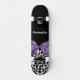 Jegliches Mädchen würde Liebe haben, ihren Namen personalisiert auf dieser gürtelschwarz-weißen Leopardendruckskateboard mit einem hübschen lila Band in einem niedlichen Bogen. Das modische Design des Tierdrucks bringt Sie sicher in die Mode. Flachdruckbild, nicht echtes Band.