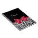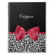 Personalisieren Sie den Namen eines Girly Girl-Girls zu diesem gürlich schwarz-weißen Leopardenprint Notebook mit einem niedlichen, hellen roten Band verbunden in einem stilistischen Bogen. Dieses modische Tierdruckdesign ist ein flaches gedrucktes Bild und enthält kein echtes Band.